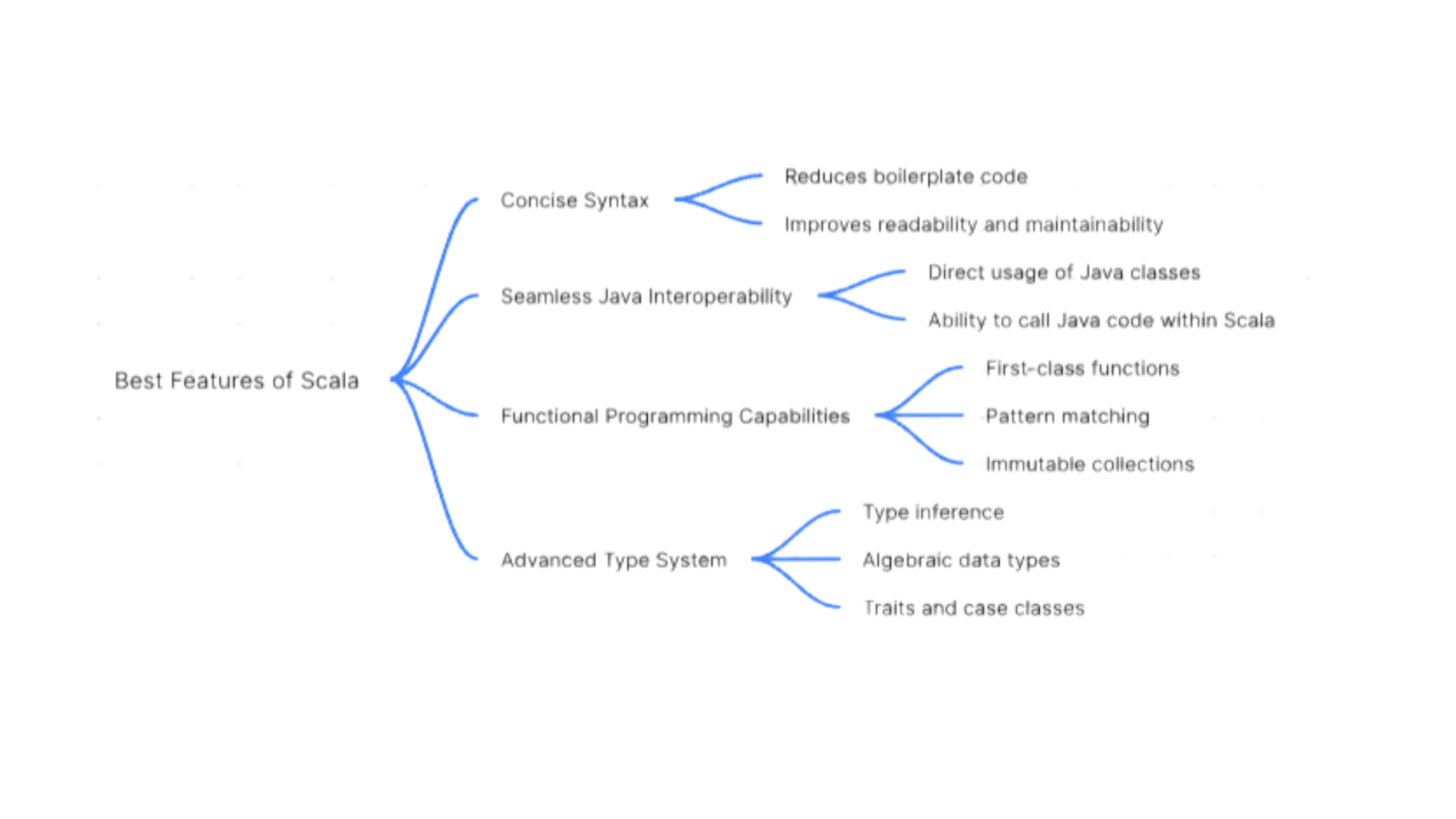 Best Features of Scala: Explore Scala's concise syntax, seamless Java interoperability, functional programming capabilities, and advanced type system.